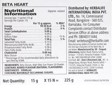 HERBALIFE Beta Heart Beta-Glucan Vanilla Flavour - 225g Description Reviews (0) ₹1,909 ₹2,342 Add to cart